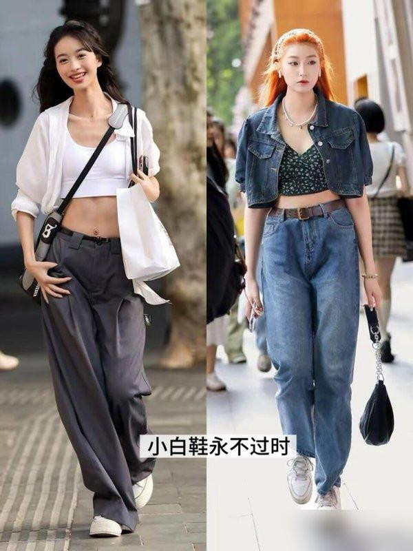 后来在淮海路见个姑娘穿拖地天丝阔腿裤配小白鞋,裤脚刚好盖过鞋背,走路带风的样子,突然就想通了:舒服和好看真能共存!