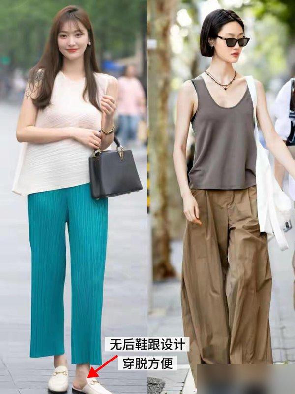 天热的时候最爱穿亚麻阔腿裤配平底穆勒鞋,脚下轻得像没穿鞋,挤地铁不用怕踩别人脚,去超市买菜提着重袋子也稳,连去瑜伽课都不用换鞋,多省事儿!